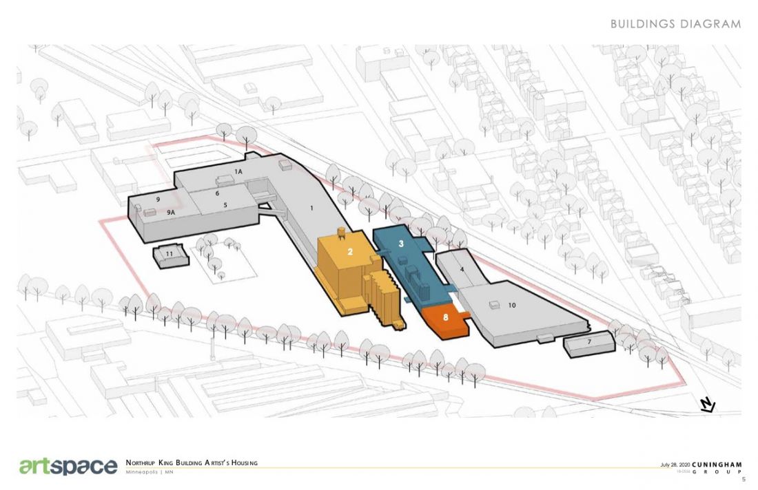 Artspace’s redevelopment of Northrup King Artist Lofts buildings 2 and 3 will create 84 live/work units for artists and their families, as well as provide amenities such as an on-site management office, a gallery space in each building, a large laundry room accessible to all residents, a shared workspace, and a bicycle storage area.
